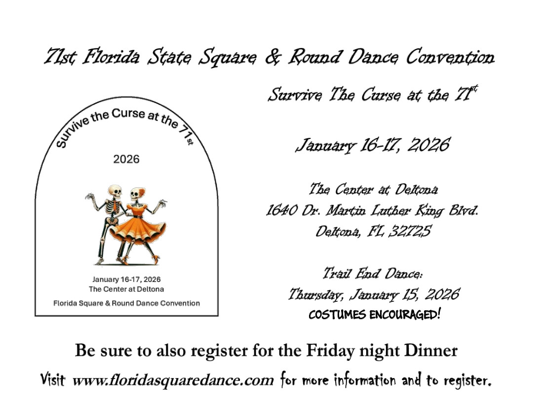 *Activities or Training opportunities presented here are not necessarily an endorsement by the Florida Callers Association when not directly sponsored by the Florida Callers Association.